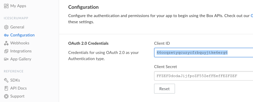 Finally, open the iceScrum administration settings, enable the Box integration and enter the Client ID you obtained.