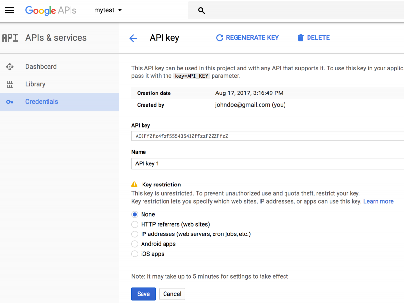 Start by creating API key credentials. You can optionally restrict the use of this API key to the domain of your iceScrum server.