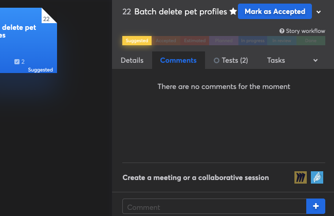 When a meeting is created, everyone browsing the project is informed by a notification. All ongoing meetings are displayed on the project dashboard, whether they were created from there or from an item “Comments” tab.