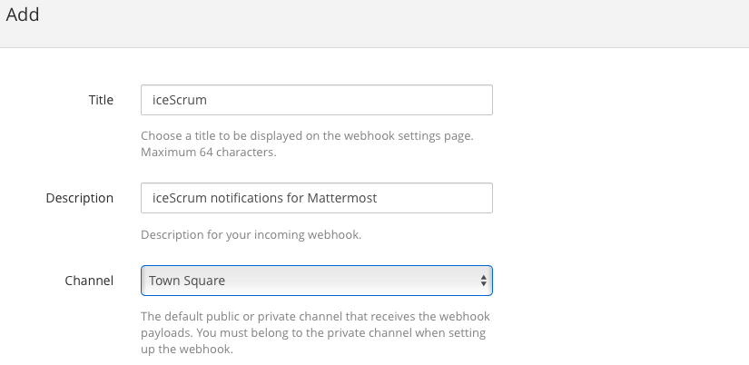 Once you have your Mattermost Webhook URL, login as a ScrumMaster, enable the iceScrum Mattermost App and configure it in your project settings by providing the URL.