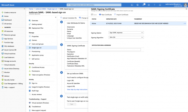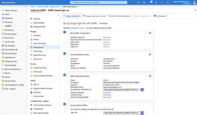 Email attribute: SAML email attribute name used to create local iceScrum user (required)