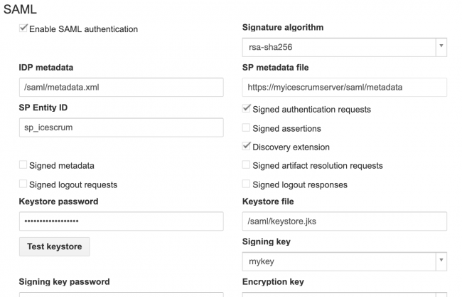 Last name attribute: SAML last name attribute name used to create local iceScrum user (required)
