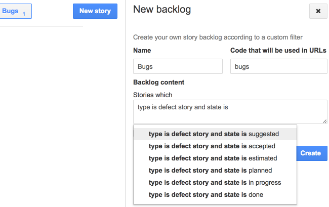 Create custom story backlogs with personalized filters. Such backlogs are personal by default, but you can also share them with your team!