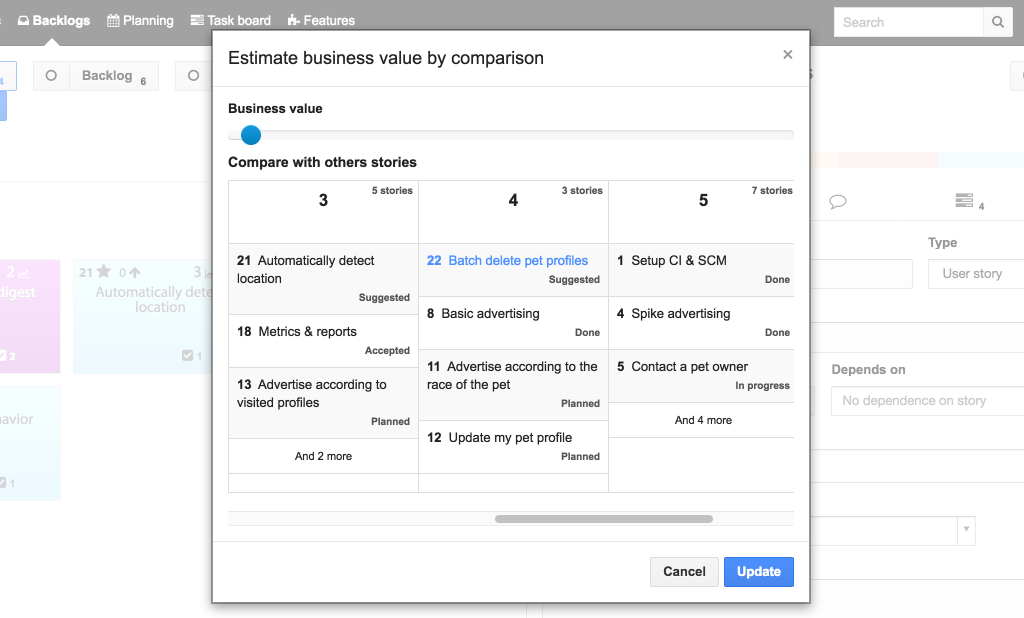 Allow your users and stakeholders to vote for the stories they prefer. This helps you take into account their wishes when prioritizing your product backlog.