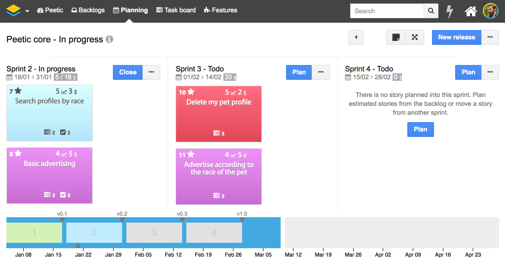 Say goodbye to the juggling between "release plan" and "timeline" views. All the release / sprint planning is now done under a unified view named "Planning".