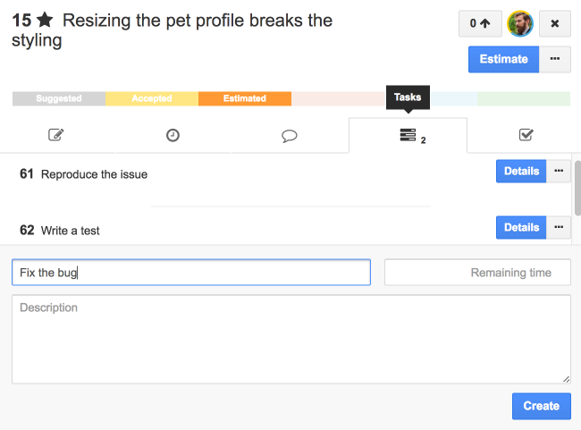 [col md="6"]You can create your tasks directly on a story even if it’s not planned in a sprint.